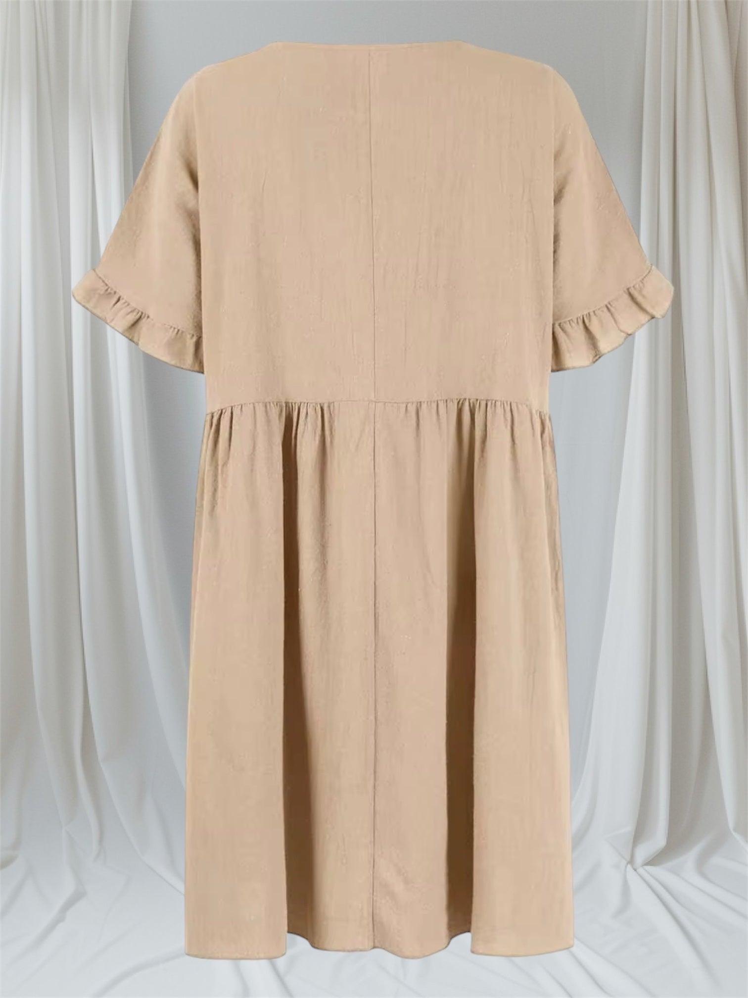 A vision of understated elegance, this dress pairs soft textures with bold silhouettes, creating a piece that commands attention without saying a word.
